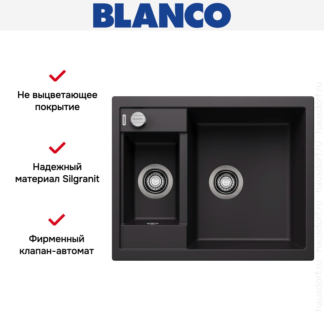 Обратите внимание на дизайнерские отличия мойки Бланко, которые помогут в создании идеальной кухни в вашем доме. Она выполнена в цвете черный. Основной материал — Silgranit, он гарантирует надежность и долгие годы службы без повреждений.