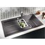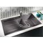 Оборачиваемая модель оборудована дополнительной чашей и коландером из нержавеющей стали. Аксессуар повторяет форму чаши и необходим для мытья столовых приборов или фруктов. Излишки воды стекают через специальные отверстия. В комплект входят также отводная арматура с клапаном-автоматом для основной чаши, позволяющая удобно сливать воду, и корзинчатый вентиль для дополнительной чаши, предупреждающий появление засоров. Большое крыло — дополнительная рабочая зона. Материал Silgranit устойчив к появлению царапин и сколов, легко очищается и является безопасным для продуктов питания.