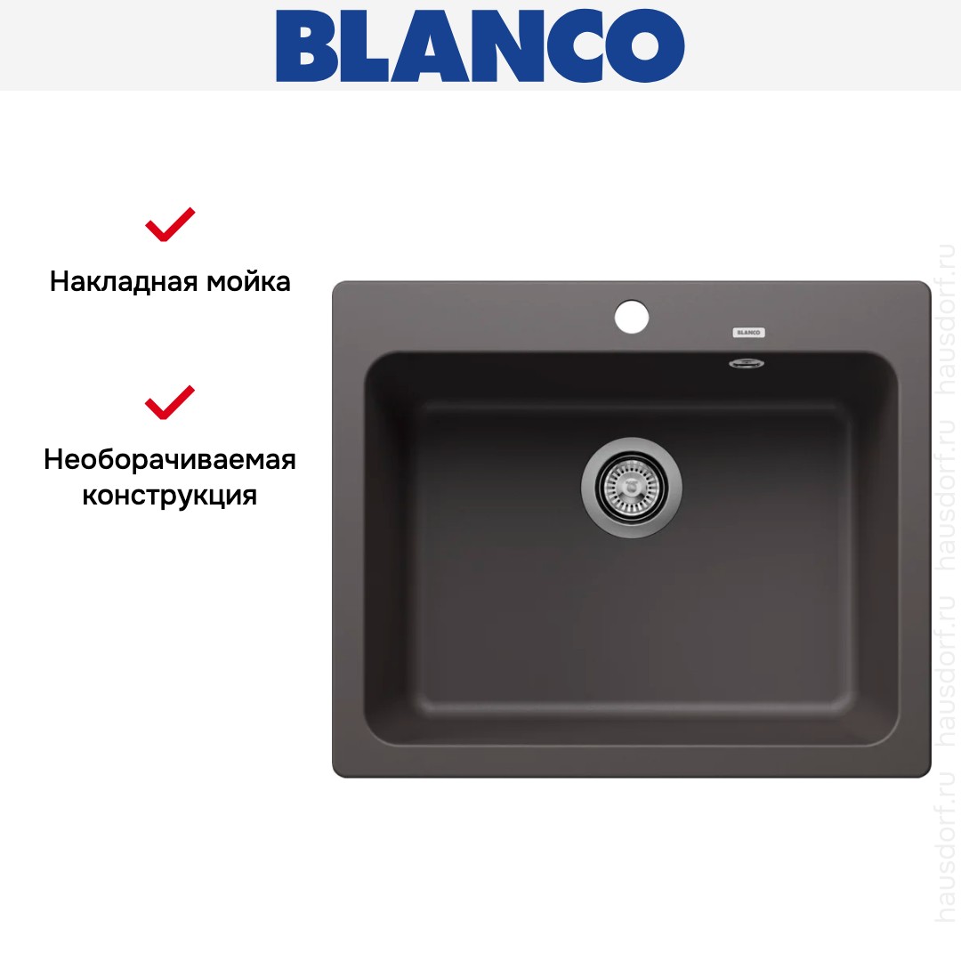 Накладная мойка Blanco — отличный выбор для тех, кто хочет создать гармоничное пространство с удобной сантехникой. простой в установке. Преимущество такой конструкции: легко подобрать практически к любой кухне и не придется демонтировать вместе с тумбой при ремонте или перестановке остальной мебели. Данная модель имеет стандартную форму, поэтому подходит большинству пользователей. Устанавливается над столешницей: это самый простой способ монтажа, зачастую с ним можно справиться даже без специалистов, главное — правильно рассчитать размеры ниши.