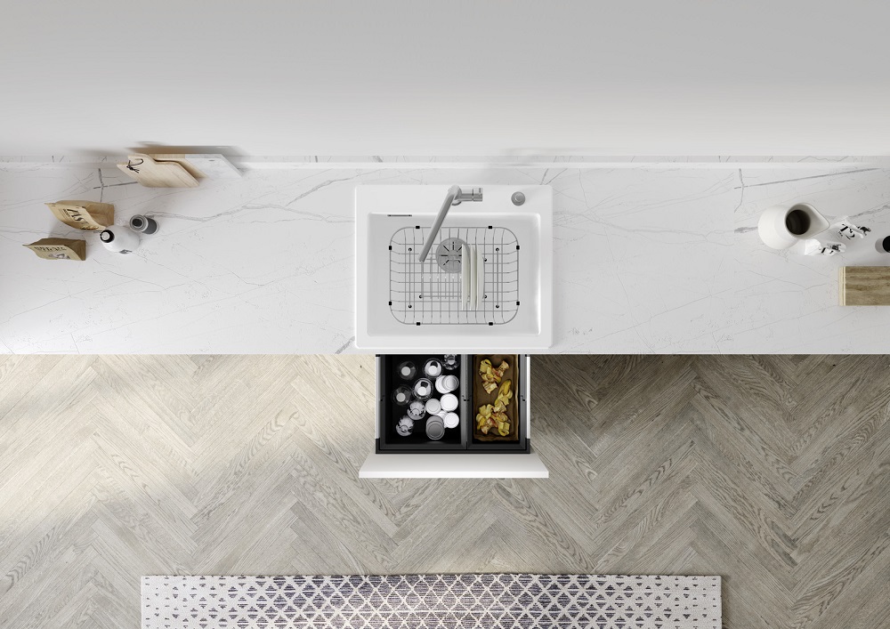 Накладная мойка — самая простая в установке и подключении. Она буквально «надевается» сверху кухонного шкафа вместо столешницы и может быть закреплена на готовой тумбе, без необходимости включать ее в проект на этапе дизайна. Ее можно легко самостоятельно подключить к коммуникациям, а также заменить в дальнейшем.