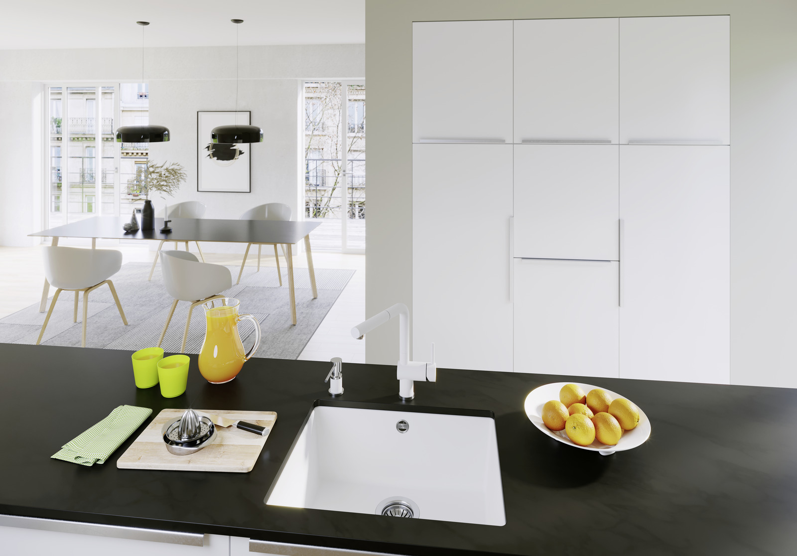 Материал Silgranit сочетает прочность каменного композита и лёгкость ухода. Такая структура устойчива к царапинам и температурным воздействиям, а также стойко держит цвет, что особенно ценно для белых поверхностей. Текстура уменьшает видимость мелких следов от воды и отпечатков, а гладкая, но немаркая поверхность легко чистится мягкой губкой и неабразивными средствами. Перелив предохраняет от перелива при забывчивом наполнении, а комплектный корзинчатый вентиль делает слив удобным и надёжным.