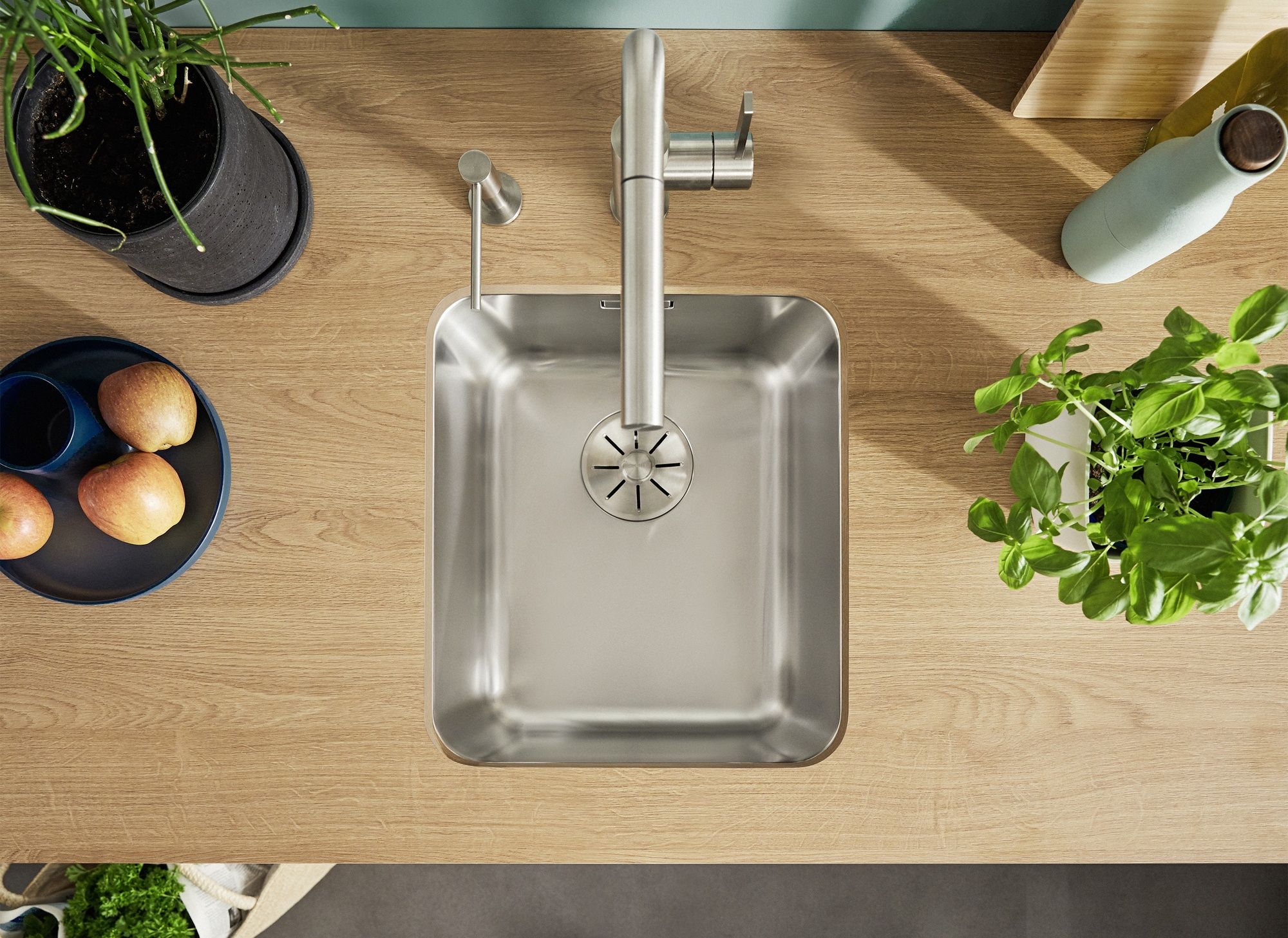 Мойка с одной чашей — классический вариант, который привычен пользователям. Вариации этой конструкции — мойка с одной основной и одной дополнительной чашей, с аксессуарами (например, коландером), с крылом. Стандартная глубина таких моделей — 15-20 см, чтобы внутри поместилась посуда или продукты, а брызги не попадали вне.