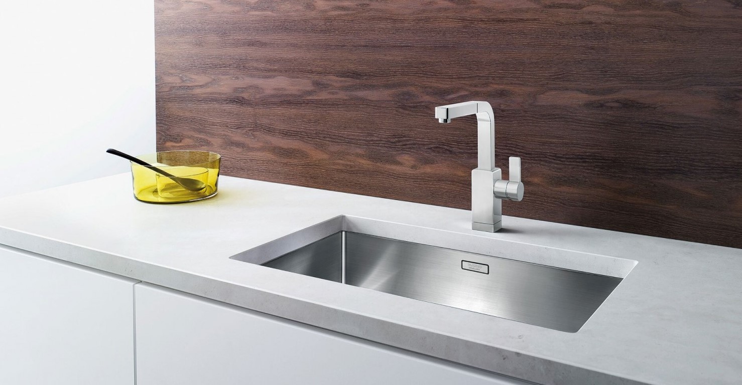 вровень со столешницей — создается ощущение бесшовного пространства, а если мойка сделана из того же материала, то и единого дизайна;