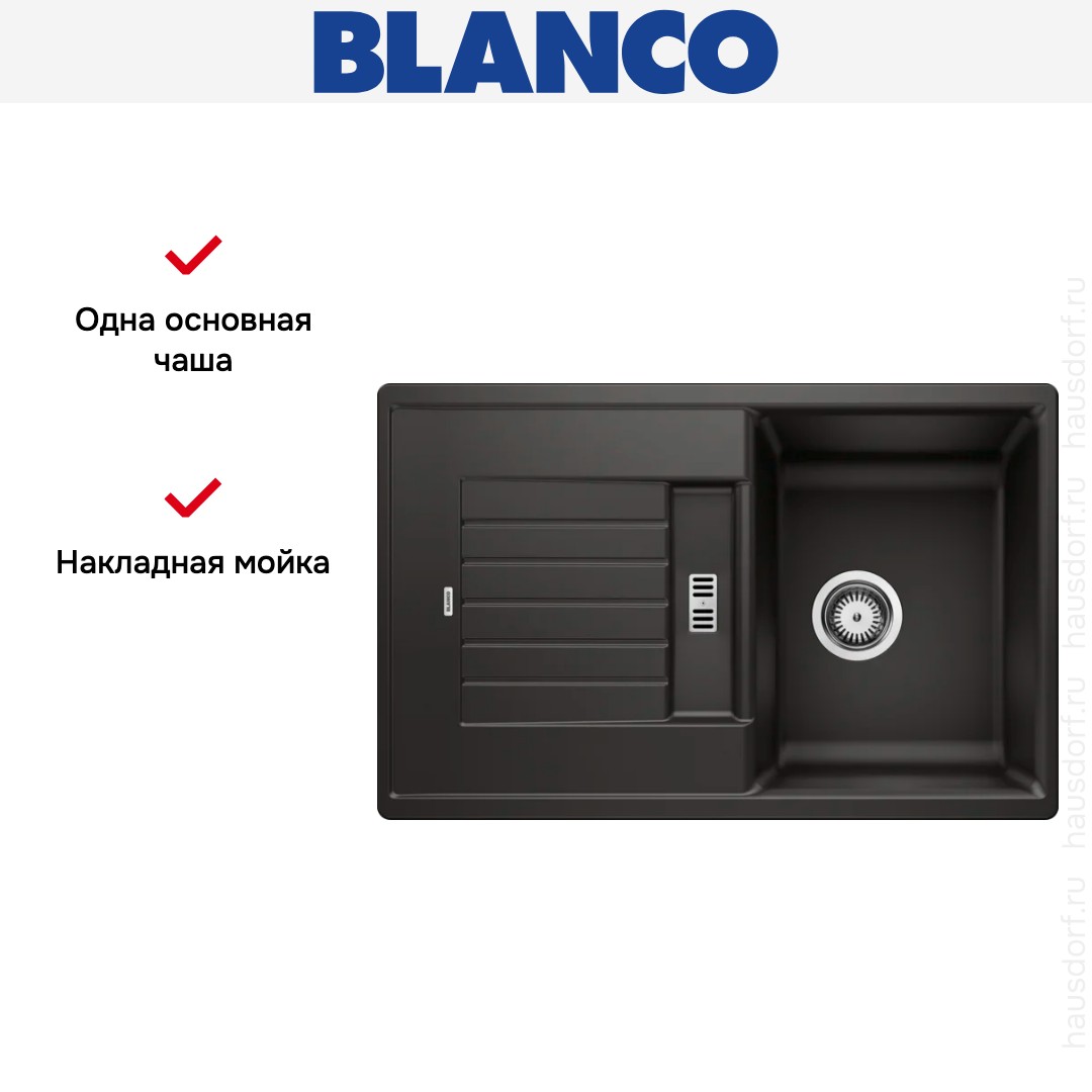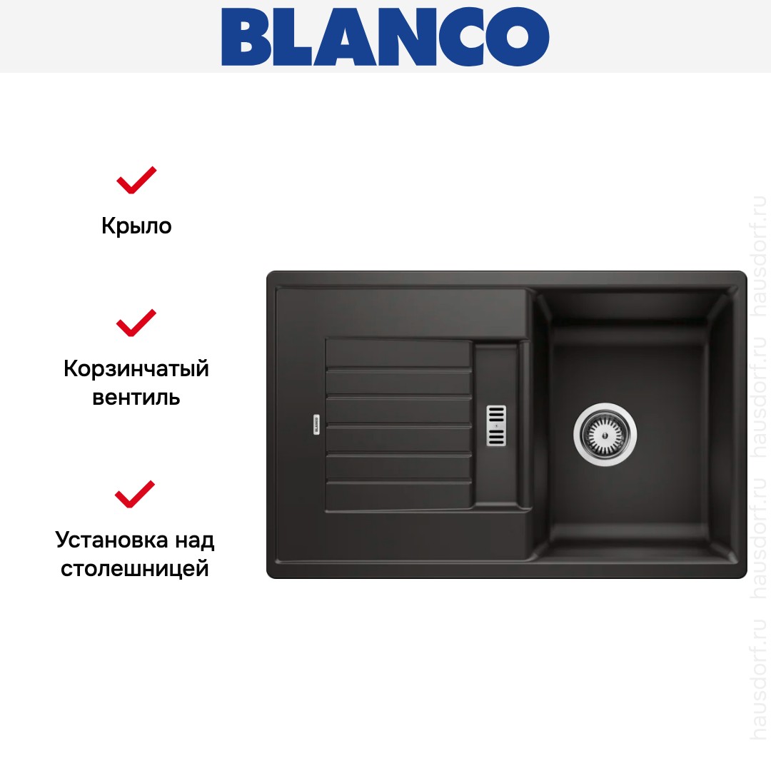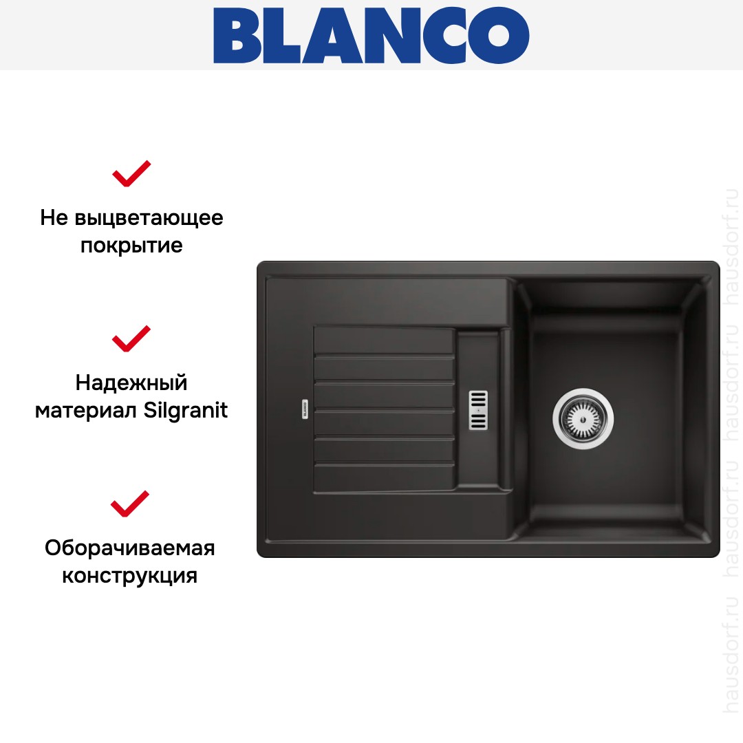 Мойка BLANCO ZIA 45 S Silgranit черный в Екатеринбурге