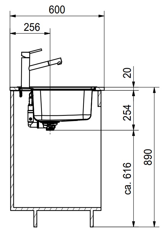 База — это шкаф, в который вы планируете устанавливать мойку. Данный параметр обозначает минимальную ширину между боковые стенками. Именно столько нужно, чтобы правильно разместить всю сантехнику.
