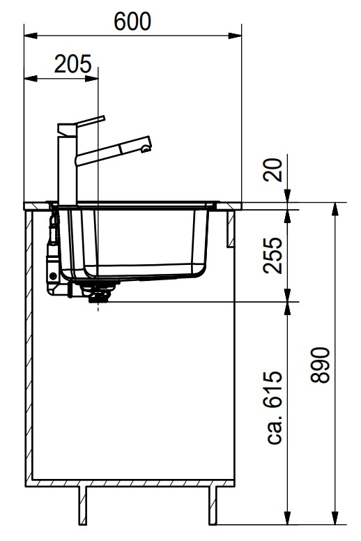 База — это шкаф, в который вы планируете устанавливать мойку. Данный параметр обозначает минимальную ширину между боковые стенками. Именно столько нужно, чтобы правильно разместить всю сантехнику.