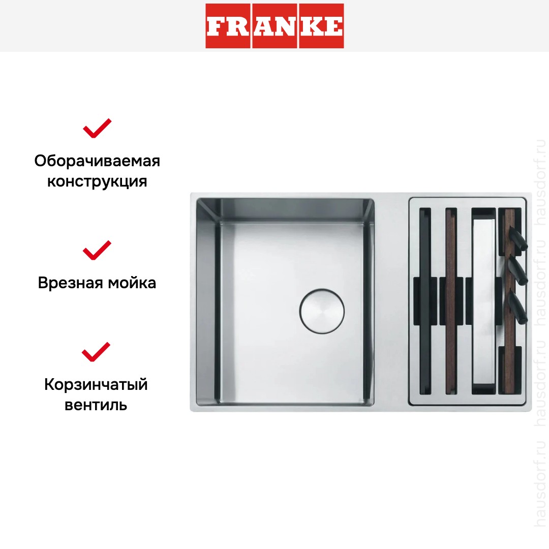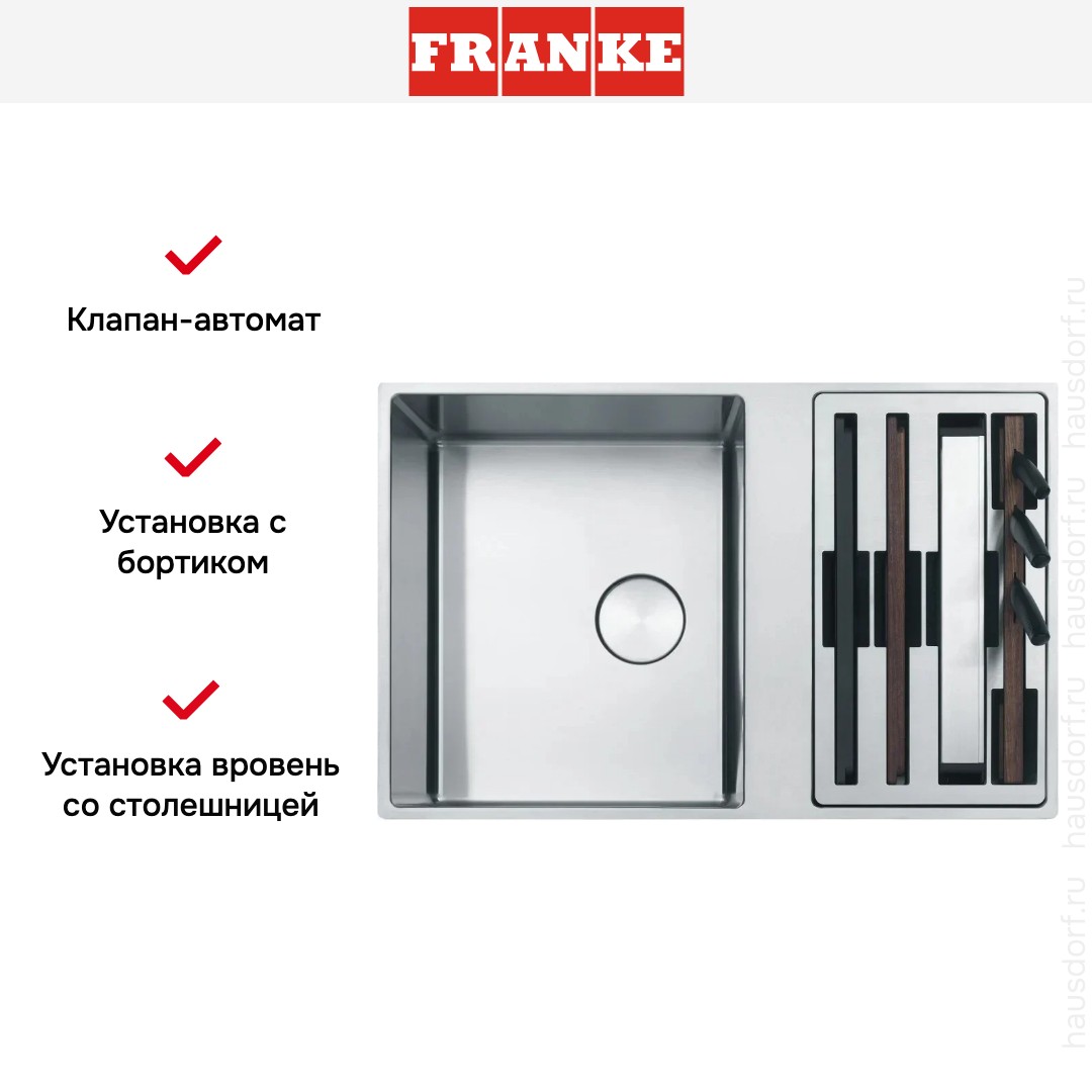 Мойка Franke BWX 220-41-27 хром — элегантное решение для современной кухни, сочетающее в себе функциональность, долговечность и безупречный внешний вид. Эта встраиваемая модель имеет строгую прямоугольную форму, что обеспечивает максимальное удобство в эксплуатации и гармонично вписывается в интерьер. Её габариты — 79 на 51 сантиметр — позволяют эффективно использовать рабочее пространство, не занимая лишнего места. Установка «вровень со столешницей» создаёт единую гладкую поверхность, упрощая уход и придавая кухонной зоне завершённый эстетичный вид.