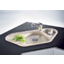 Дополнительная чаша меньше основной и также может быть вспомогательной, например, при мытье и сушке овощей.