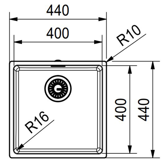 - Габариты мойки, ШxГ (см): 44х44