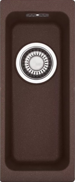 Мойка Franke Kubus KBG 110-16 шоколадного цвета — компактная и элегантная модель, которая идеально подходит для небольших кухонь, барных зон или вспомогательных рабочих поверхностей. Эта прямоугольная врезная конструкция устанавливается под столешницу, создавая бесшовный переход от плоскости к чаше и обеспечивая простоту ухода за зоной стыка. Её габариты — всего 18,7×46 см — позволяют разместить изделие даже в узком модуле шириной 45 см, при этом для монтажа требуется проём размером 16×40 см.