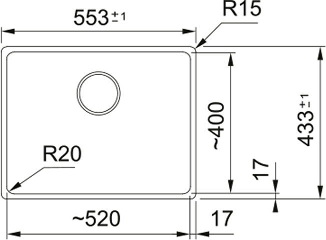 Глубина чаши 43,3 см обеспечивает удобство при выполнении повседневных задач — от мытья посуды до обработки продуктов — и эффективно снижает разбрызгивание воды. Внутренние углы закруглены радиусом 2 см, что придает форме мягкость и облегчает очистку, а внешний контур имеет более четкие, но все же сглаженные линии с радиусом 1,5 см, что подчеркивает современный и строгий характер дизайна.