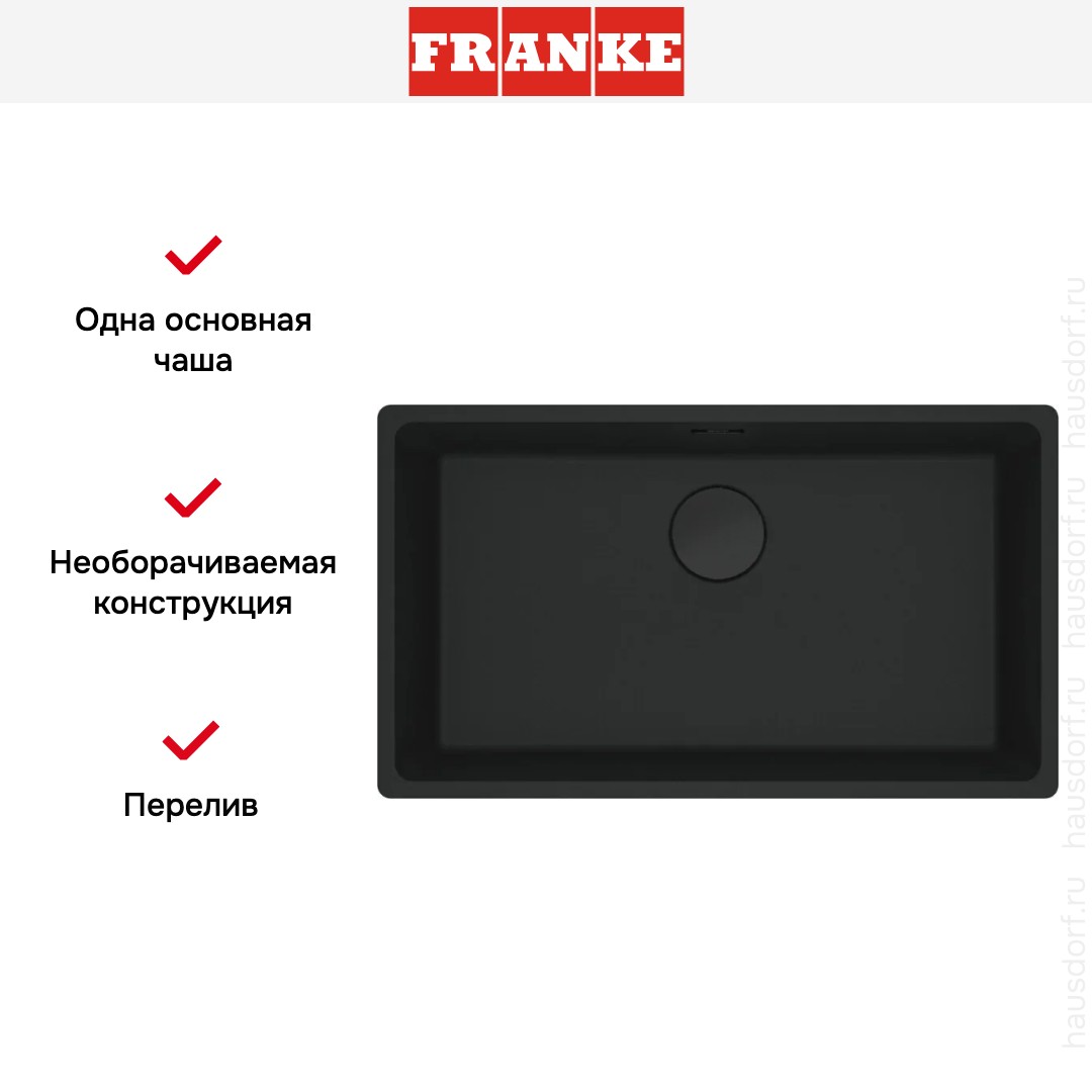 Обратите внимание на дизайнерские отличия мойки Франке, которые помогут в создании идеальной кухни в вашем доме. Она выполнена в цвете матовый черный. Основной материал — фрагранит, он гарантирует надежность и долгие годы службы без повреждений.