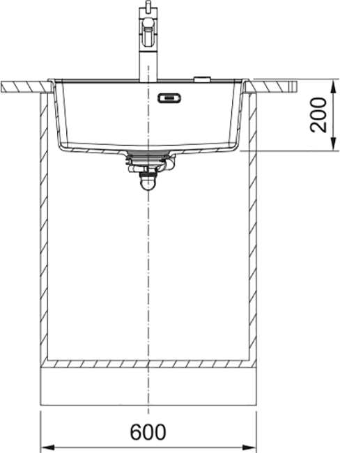 Глубина чаши тщательно продумана: она обеспечивает удобство при выполнении повседневных задач — от мытья посуды до подготовки продуктов — и одновременно снижает риск разбрызгивания жидкости. Все контуры изделия смягчены: внутренние углы имеют радиус скругления 2 см, наружные — 1,5 см, как и у шаблона для выреза, что придаёт конструкции плавность линий и облегчает очистку.