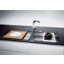 Интегрированная — встраиваемая модель из того же материала, что и столешница. Благодаря этому она выглядит как часть мебели.