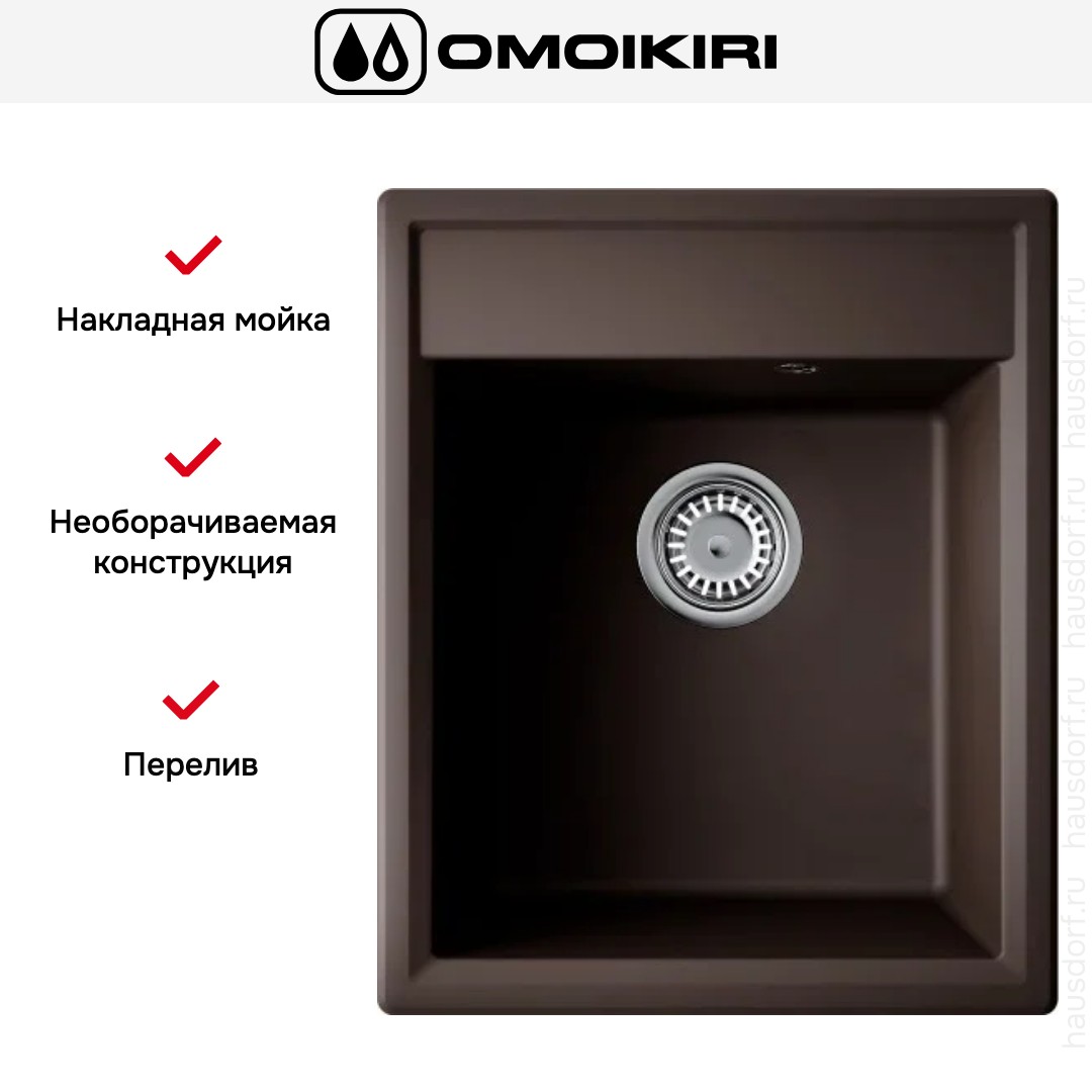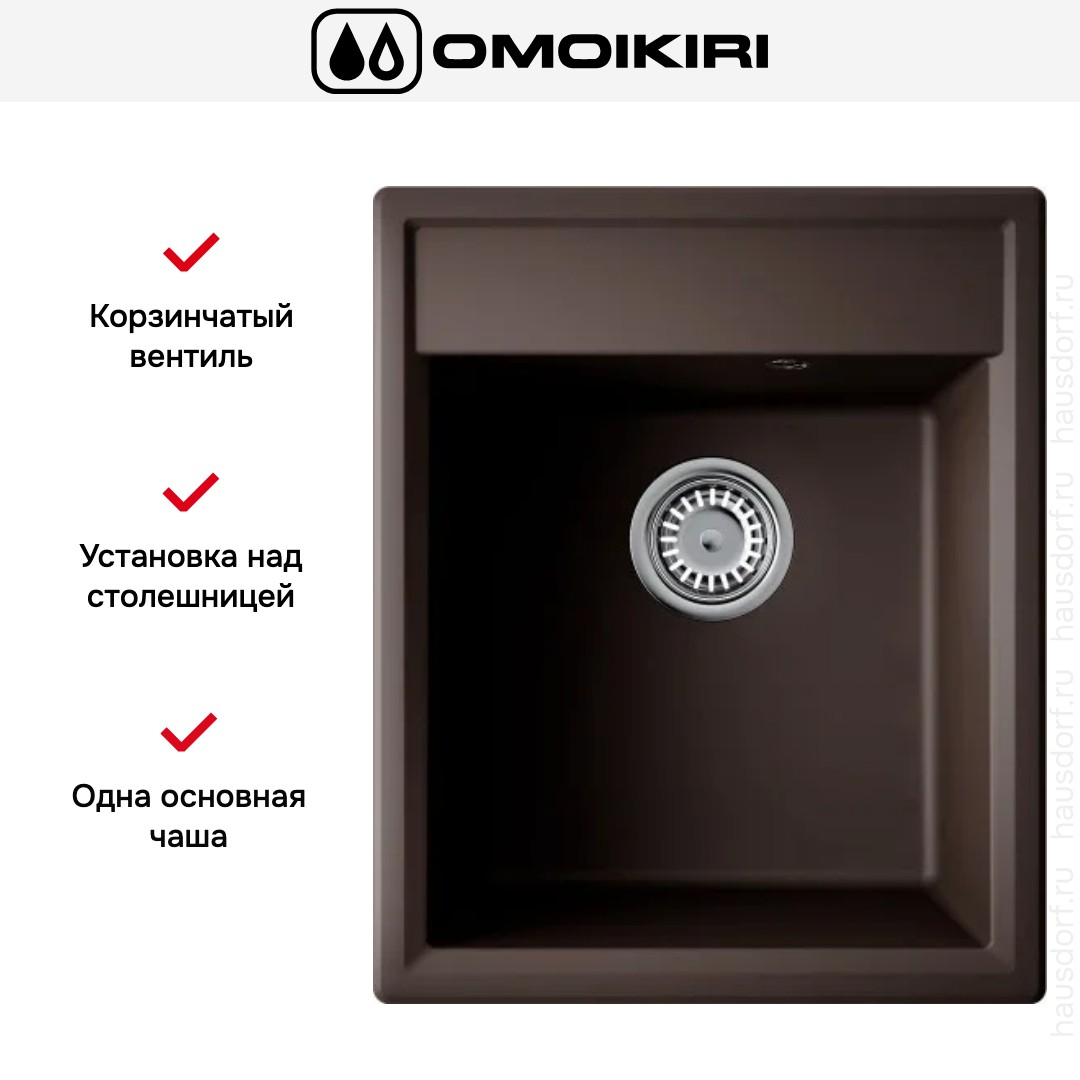 Выглядит сдержанно и в то же время эффектно: прямоугольная форма, четкие кромки и цвет эспрессо создают плотный, выразительный образ. Установка над столешницей помогает получить аккуратный контур, упрощает монтаж и обслуживание. Для базы требуется модуль шириной 40 см, а вырез 40×49 см обеспечивает точную посадку без подгонки по месту.. Габариты 42×51 см делают модель компактной, но вместительной. Пропорции рассчитаны так, чтобы чаша занимала центр зоны, не перегружая рабочую область.