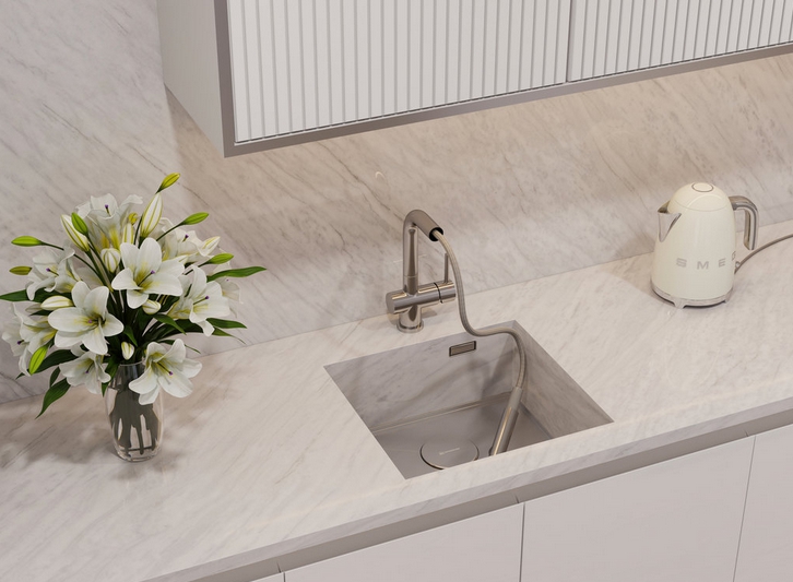 Для создания бесшовного дизайна кухни или ванной можно интегрировать мойку в столешницу так, чтобы создавалось ощущение единого пространства. Такие модели устанавливаются под столешницу и сделаны из такого же материала. Встроить подобную мойку в уже готовую кухню сложно, обычно их выбирают на этапе продумывания интерьера.