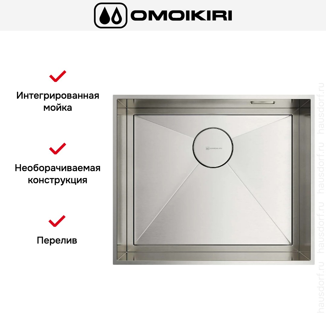 Мойка Omoikiri Kasen 53-INT-IN. Эта интегрированная прямоугольная мойка под столешницу сочетает в себе аккуратный профиль и продуманную функциональность для современной кухни.