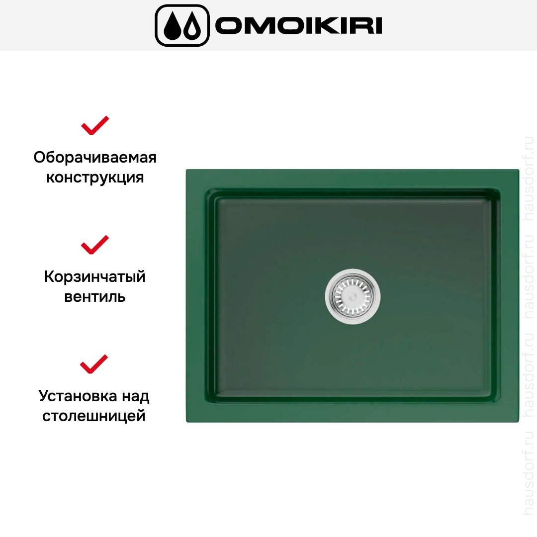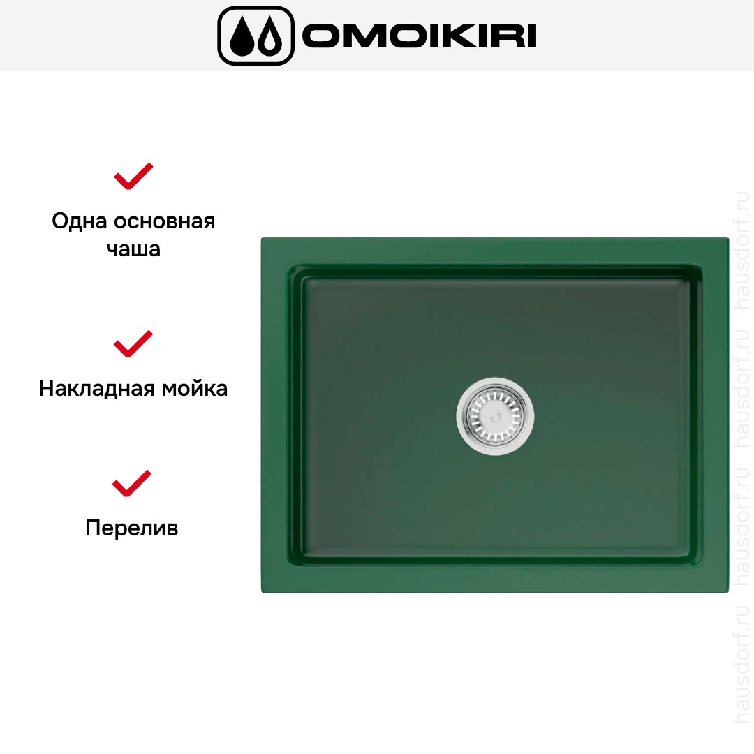 Изделие выполнено в королевском зелёном глянцевом оттенке, который привносит глубину цвета и визуальную выразительность в рабочую зону кухни. Глянец подчёркивает плавные линии и облегчает удаление загрязнений при ежедневной уборке. Компактные габариты позволяют сохранить простор на столешнице, а прямоугольная форма оптимизирует пространство для мытья посуды и подготовки продуктов.