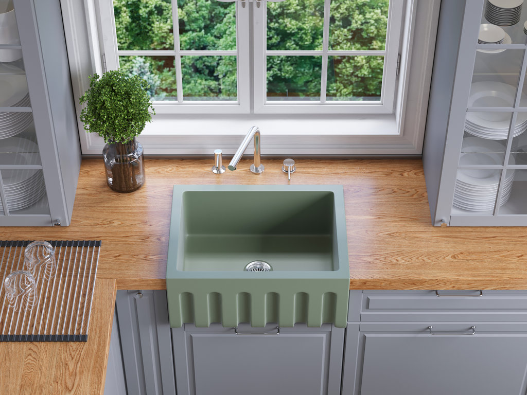 Удобны и элегантны мойки из керамики: они могут изготавливаться из фарфора, фаянса или керамогранита и отлично смотрятся в классическом или деревенском интерьере. Такие модели, особенно фарфоровые и фаянсовые, нужно беречь от механических повреждений.