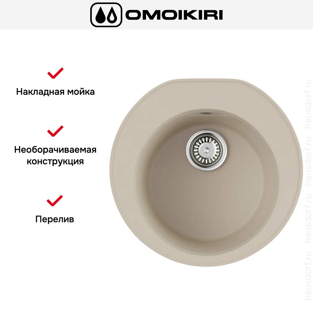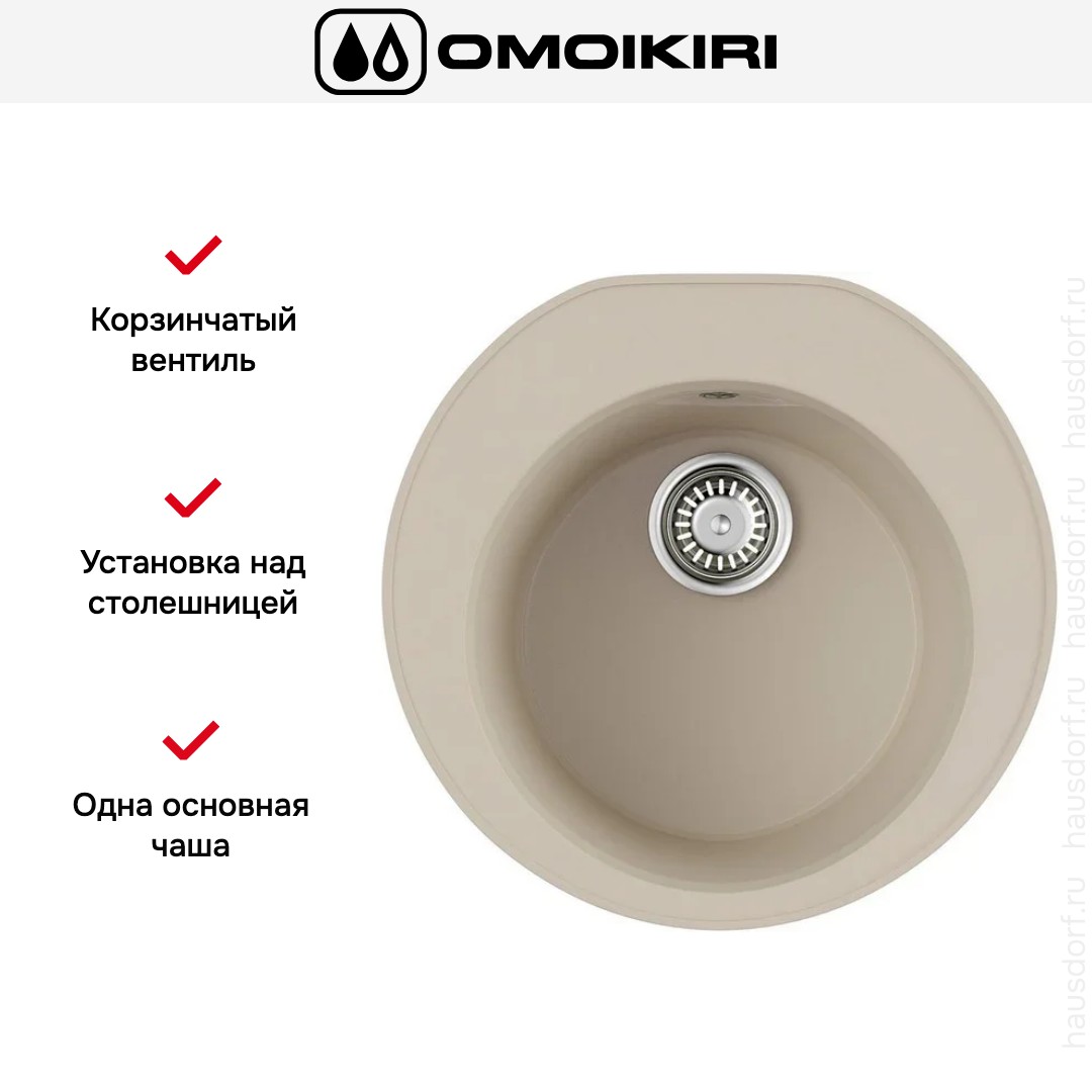 Мойка Omoikiri Miya 50R BE — накладная круглая раковина ванильного оттенка, которая легко впишется в компактную кухню и добавит ей мягкий светлый акцент. Дизайн лаконичен и аккуратен, без лишних выступов, что визуально расширяет пространство рабочей зоны. Круглая форма с плавными линиями создаёт удобную эргономику и облегчает уход за поверхностью.