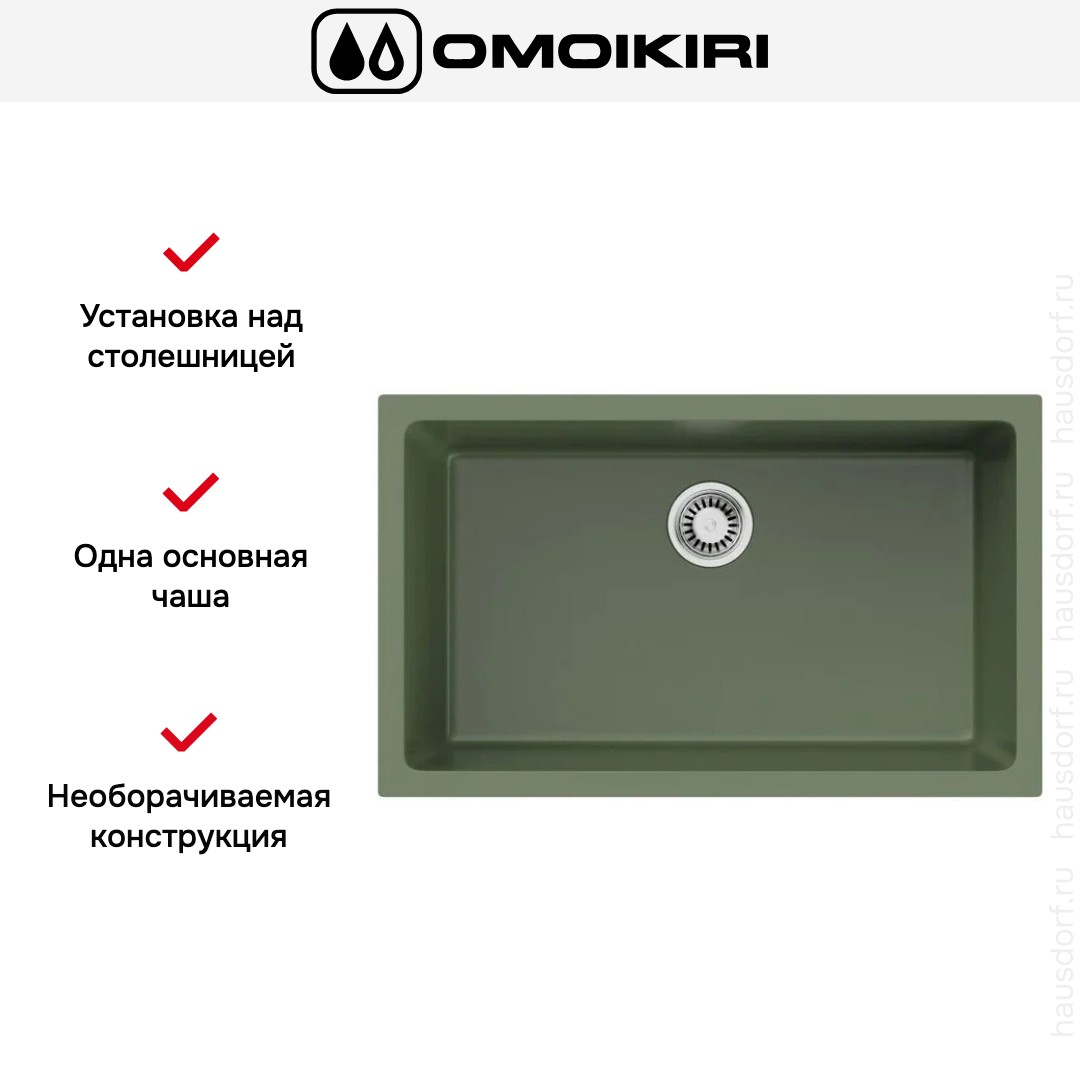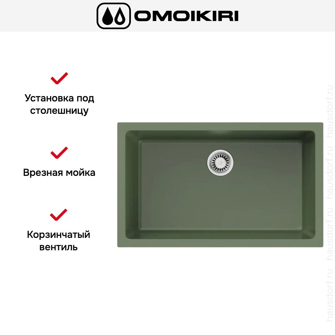 Мойка OMOIKIRI Okinoshima 76-U i OL сочетает в себе строгие геометрические линии и мягкий природный оттенок оливкового цвета, что делает её заметным, но спокойным акцентом в интерьере. Прямоугольная форма и габариты 76×46 см позволяют гармонично вписать изделие в модную кухонную композицию, а глубокая основная чаша 25,5 см обеспечивает удобство при мытье крупной посуды. Однородная поверхность и аккуратные радиусы придают изделию завершённый вид и облегчают уход.