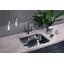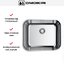 Радиус скругления 6,5 см делает углы плавными, что облегчает очистку и предотвращает скопление грязи. Метод производства цельнотянутая придает изделию однородную структуру без сварных швов, что повышает прочность и гигиеничность поверхности. Система шумоподавления снижает шум при попадании воды и контакте посуды с поверхностью, что делает эксплуатацию более комфортной в условиях открытой планировки кухни.