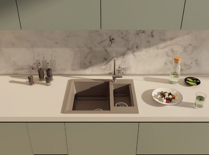 вровень со столешницей — создается ощущение бесшовного пространства, а если мойка сделана из того же материала, то и единого дизайна;