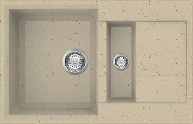 Мойки из искусственного камня выпускаются обычно в пастельных тонах, которые получают благодаря добавлению специальных пигментов. Количество оттенков у них очень велико — от белого, жемчужного, беж, цветов ванили, пастилы, корицы до тонов графит, антрацит и базальт, а также универсального черного. Эти оттенки отличаются высокой стойкостью, не линяют и не выцветают. Менее востребованы цветные мойки, однако по качеству они не уступают изделиям нейтральных оттенков.