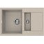 Прямоугольная мойка выглядит опрятно и лаконично: мягкий бежевый цвет и четкие очертания создают аккуратную рабочую поверхность. На общей панели шириной 78 см и глубиной 50 см объединены две чаши и примыкающая к ним площадка-крыло.