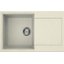 Прямоугольная накладная мойка большого размера шириной 79 см и глубиной 50 см выглядит внушительно, она уместна в кухнях разного стиля. Бледно-желтый ванильный оттенок не бросается в глаза и в то же время отличается от привычного белого. Компоновка включает одну основную чашу и крыло, равные по ширине; линии строгие, пропорции выверены, изделие легко сочетается с прямыми фасадами.