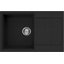 Модель выглядит сдержанно и графично: черного цвета поверхность, прямоугольный формат 79×50 см и четкие пропорции. Плоскость крыла продолжает общую геометрию и образует единую рабочую зону с основной чашей. Благодаря установке над столешницей контур раковины четко выделяется на фоне гарнитура, а симметрия подчёркивается ровными линиями кромки. Крыло визуально уравновешивает чашу и добавляет полезную плоскость рядом с рабочей областью.