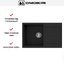 Корпус выполнен из материала TetoGranit. Метод производства — литье: в процессе формируется форма заданных размеров и геометрии. Толщина материала составляет 10 мм, масса изделия — 8.3 кг, что придает конструкции вес и устойчивость на основании. Цвет — черный, поэтому изделие легко сочетается с контрастными и темными столешницами, не перетягивая внимание и поддерживая общий стиль кухни. В комплект входят корзинчатый вентиль и сифон, а также крепления для монтажа — для подключения слива и надежной фиксации раковины.
