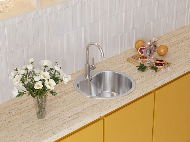 Круглые и овальные мойки смотрятся эффектно и стильно, у них отсутствуют углы, так что уход не составляет труда. При одинаковом объеме круглая мойка будет казаться меньше, чем квадратная. Такие модели часто используют в классическом интерьере. Установка такой мойки требует круглого отверстия в столешнице, что также достаточно просто сделать. Угловые мойки позволяют заполнить пространство в углах, экономя место в помещении. Раковины в них могут быть различной формы, а место за мойкой можно использовать для хранения. Мойки в форме трапеции выглядят свежо и оригинально, но подойдут не для всякого интерьера.