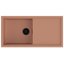 Внушительная модель с прямоугольными очертаниями выполнена в необычном красно-коричневом оттенке, который добавляет кухонной зоне теплоты и глубины. Модель выглядит пропорциональной и сбалансированной: общие габариты 100×50 см формируют вместительный модуль, а левое крыло органично продолжает плоскость для сушки посуды. Плоские кромки и ровные линии позволяют мойке гармонично встать на столешницу и стать заметным, но не навязчивым элементом рабочей зоны.
