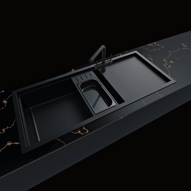 Обратите внимание на дизайнерские отличия мойки Омойкири, которые помогут в создании идеальной кухни в вашем доме. Она выполнена в цвете графит. Крыло, расположенное является дополнительным рабочим пространством, на котором можно сушить посуду, разделывать мясо и нарезать овощи.