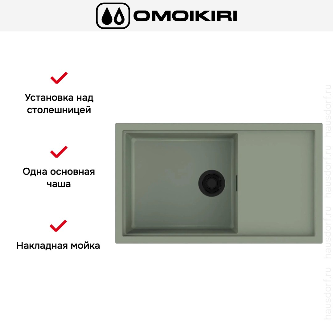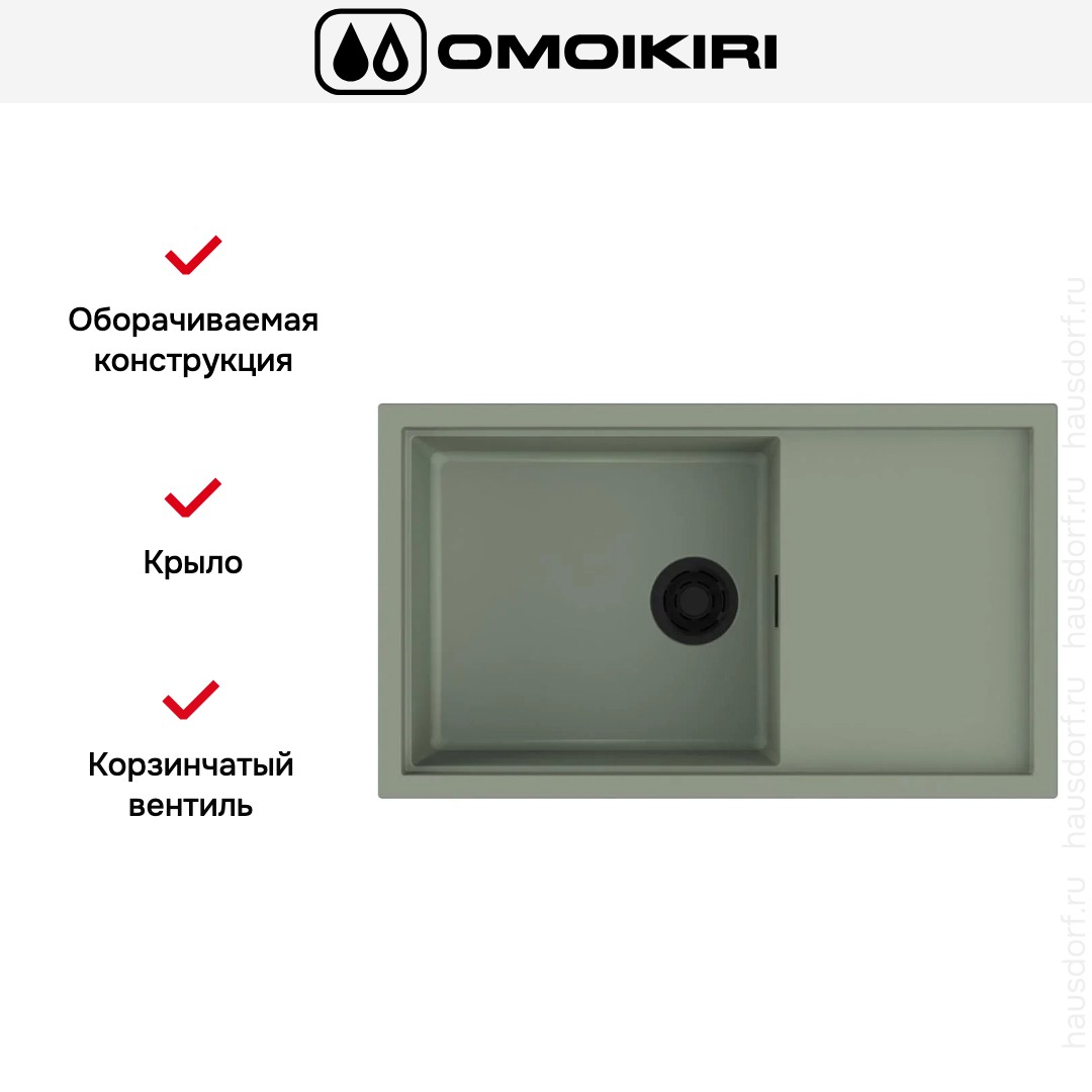 Обратите внимание на дизайнерские отличия мойки Омойкири, которые помогут в создании идеальной кухни в вашем доме. Она выполнена в цвете серо-зеленый. Крыло, расположенное является дополнительным рабочим пространством, на котором можно сушить посуду, разделывать мясо и нарезать овощи.