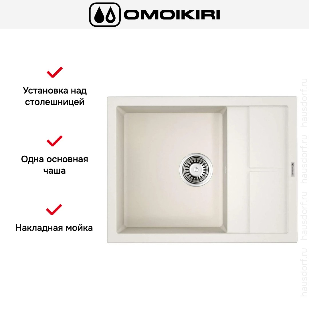 Накладная мойка Omoikiri — отличный выбор для тех, кто хочет создать гармоничное пространство с удобной сантехникой. простой в установке. Преимущество такой конструкции: легко подобрать практически к любой кухне и не придется демонтировать вместе с тумбой при ремонте или перестановке остальной мебели. Данная модель имеет стандартную форму, поэтому подходит большинству пользователей. Устанавливается над столешницей: это самый простой способ монтажа, зачастую с ним можно справиться даже без специалистов, главное — правильно рассчитать размеры ниши.