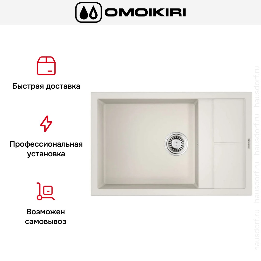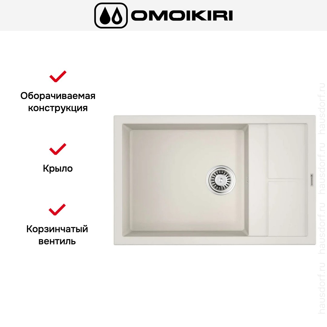Обратите внимание на дизайнерские отличия мойки Омойкири, которые помогут в создании идеальной кухни в вашем доме. Она выполнена в цвете белый. Крыло, расположенное является дополнительным рабочим пространством, на котором можно сушить посуду, разделывать мясо и нарезать овощи.