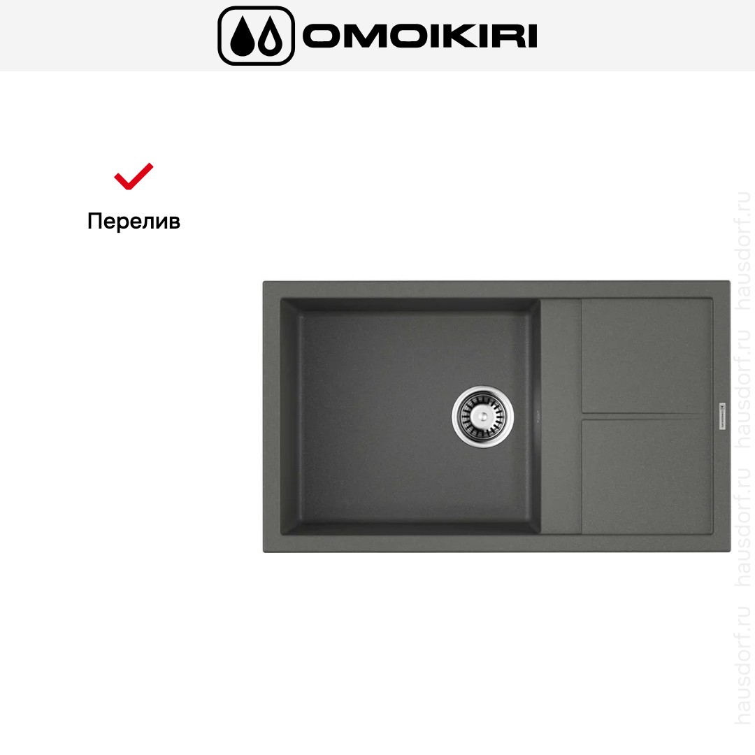 Одна большая основная чаша размером 48×43,5 см и глубиной 20 см обеспечивает удобство мытья посуды и подготовки продуктов. Такая глубина минимизирует брызги и позволяет использовать большие кастрюли и сковороды. Наличие правого или левого крыла увеличивает рабочую поверхность и служит местом для сушки или временной расстановки посуды. Перелив защищает от случайного переполнения и добавляет спокойствия при интенсивной работе у раковины.
