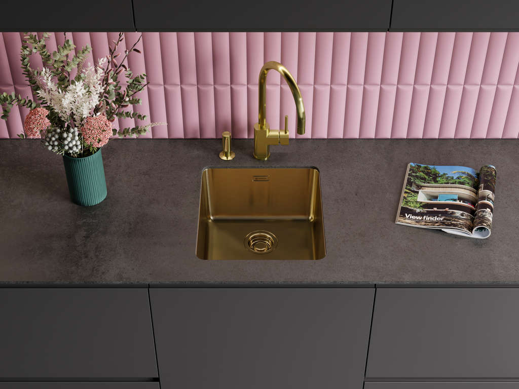 Латунная отделка сочетается с интерьером в теплой гамме и позволяет подобрать соответствующую фурнитуру в том же тоне. Это отличный выбор для компактных кухонь, мини-постирочных или как дополнительная рабочая зона в большой кухне. Для ухода достаточно мягкой губки и неабразивных средств, чтобы сохранить цвет и текстуру. В комплекте также поставляется сифон, что ускоряет запуск в эксплуатацию и снижает сложности при подключении.