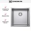 Выглядит как компактный квадратный модуль из нержавеющей стали цвета, с габаритами 44×44 см — строгие линии и небольшие скругления радиусом 1 см подчёркивают геометрию формы. Размер основной чаши 40×40 см и единая глубокая чаша высотой 20 см создают монолитный образ, при этом конструкция не предусматривает переворачивания. Поверхность сохраняет металлический блеск и ровную плоскость по периметру, что делает модель подходящей для минималистичных и функциональных кухонных зон.