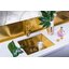 Дизайн сочетает минимализм и премиальную отделку, светлое золото придаёт кухонному пространству тёплую, современную нотку. PVD-покрытие не только эстетично, но и защищает поверхность от износа и коррозии, значительно дольше сохраняет цвет. Ручное производство обеспечивает ровные кромки и аккуратную обработку стыков, что заметно при установке в столешницу и при повседневном уходе. Небольшие скругления углов упрощают мытьё и уменьшают скопление загрязнений, сохраняя аккуратный внешний вид.
