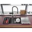 Универсальность монтажа — одно из ключевых преимуществ. Мойку можно установить над столешницей, под столешницу и вровень со столешницей в зависимости от пожеланий и конструкции кухонного гарнитура. Рекомендуемая ширина базы 80 см и монтажный вырез 70×40 см облегчают подготовку столешницы и ускоряют установку. Конструкция необорачиваемая, поэтому перед монтажом важно определиться с направлением чаши и расположением смесителя.