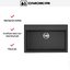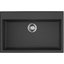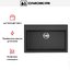 Материал — TetoGranit. Это литой состав на основе гранита, благодаря которому форма получается цельной, с ровными кромками и стабильной толщиной стенок. 10‑миллиметровая толщина придает конструкции ощутимую жесткость и солидность на ощупь. Литье позволяет выдерживать заданные размеры и аккуратные радиусы, так что мойка уверенно садится в проем 77×48 см и повторяет его границы без щелей и перепадов. Черный оттенок TetoGranit гармонирует со светлыми и темными столешницами, делая рабочую зону более выразительной.