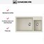 Белый цвет мойки визуально расширяет пространство и легко комбинируется как со светлыми, так и с контрастными фасадами. Прямоугольный формат упорядочивает зону готовки вокруг мойки, оставляя границы для размещения аксессуаров и моющих средств.