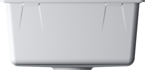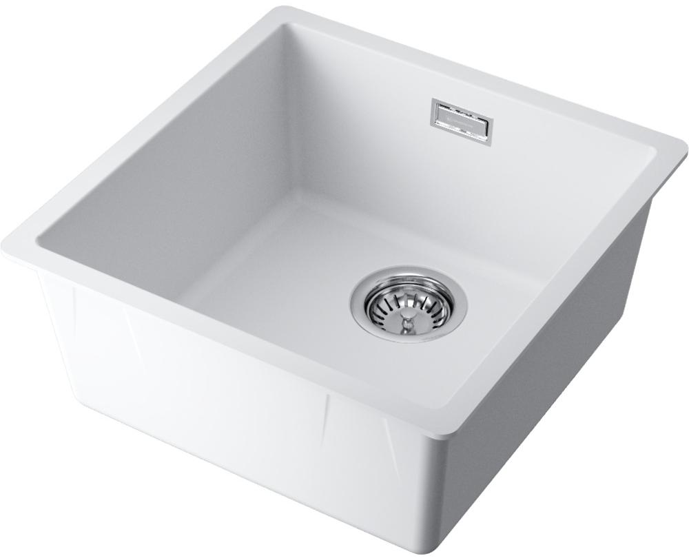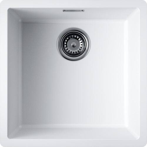 Чистые прямые линии и белое покрытие легко вписываются в светлую кухню. Материал TetoGranit имитирует плотность натурального камня, но легче и теплее на ощупь. Толщина стенок 10 мм придает ощущение прочности и снижает шум при работе с посудой. Литьевой метод изготовления обеспечивает монолитность поверхности, без заметных швов и стыков.