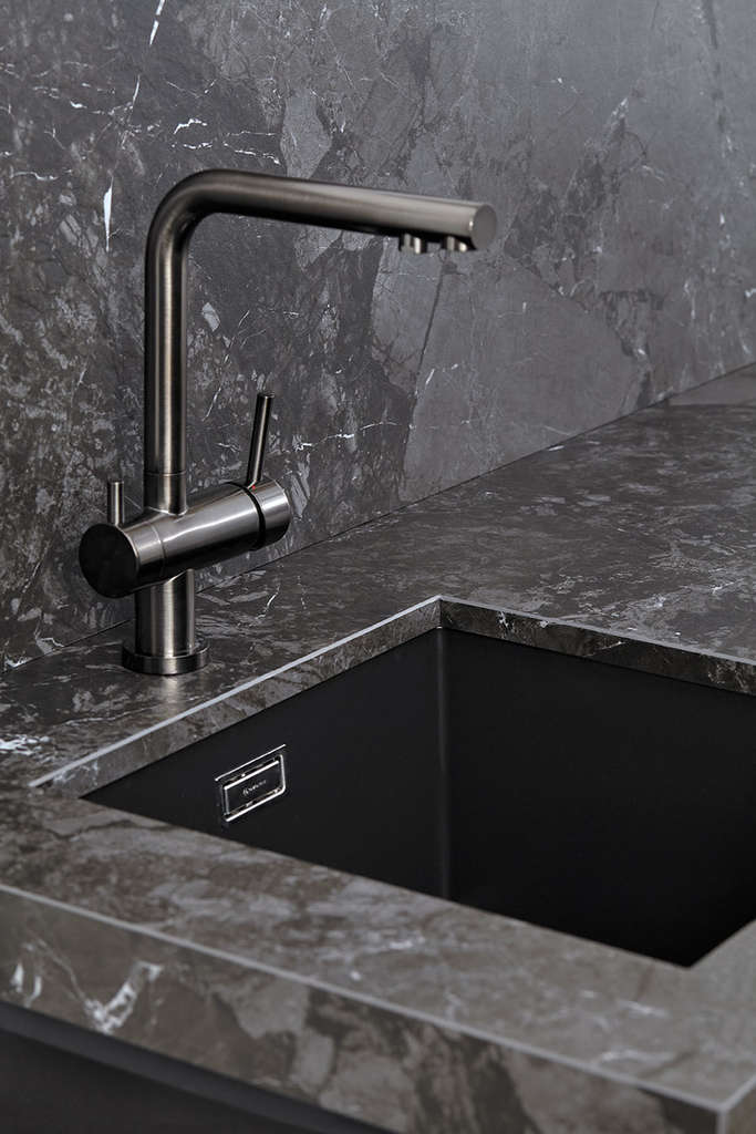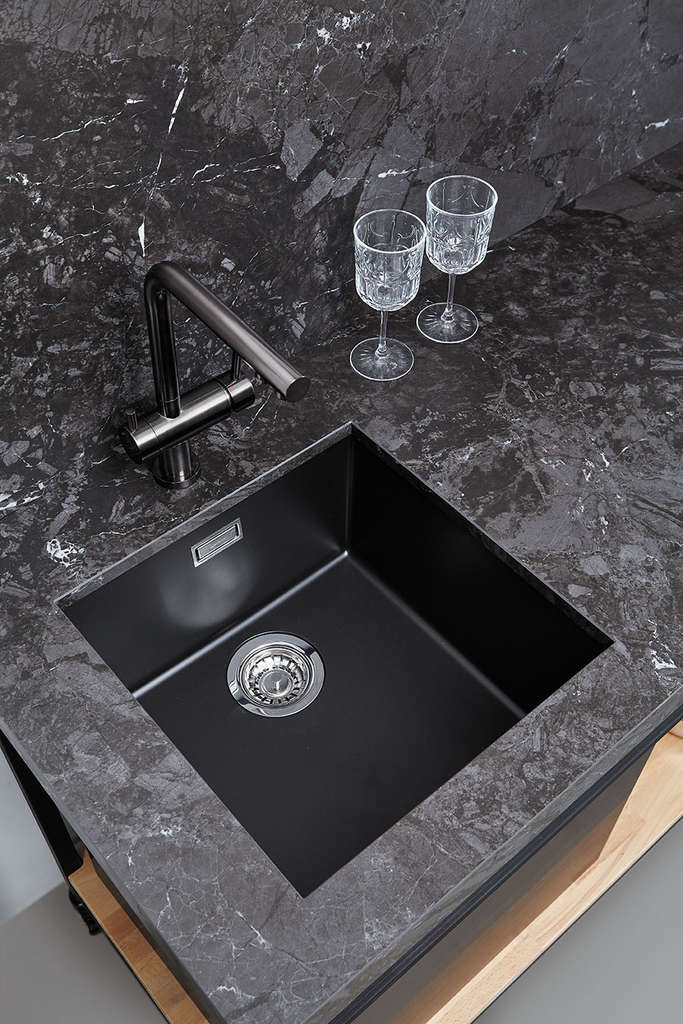 вровень со столешницей — создается ощущение бесшовного пространства, а если мойка сделана из того же материала, то и единого дизайна;