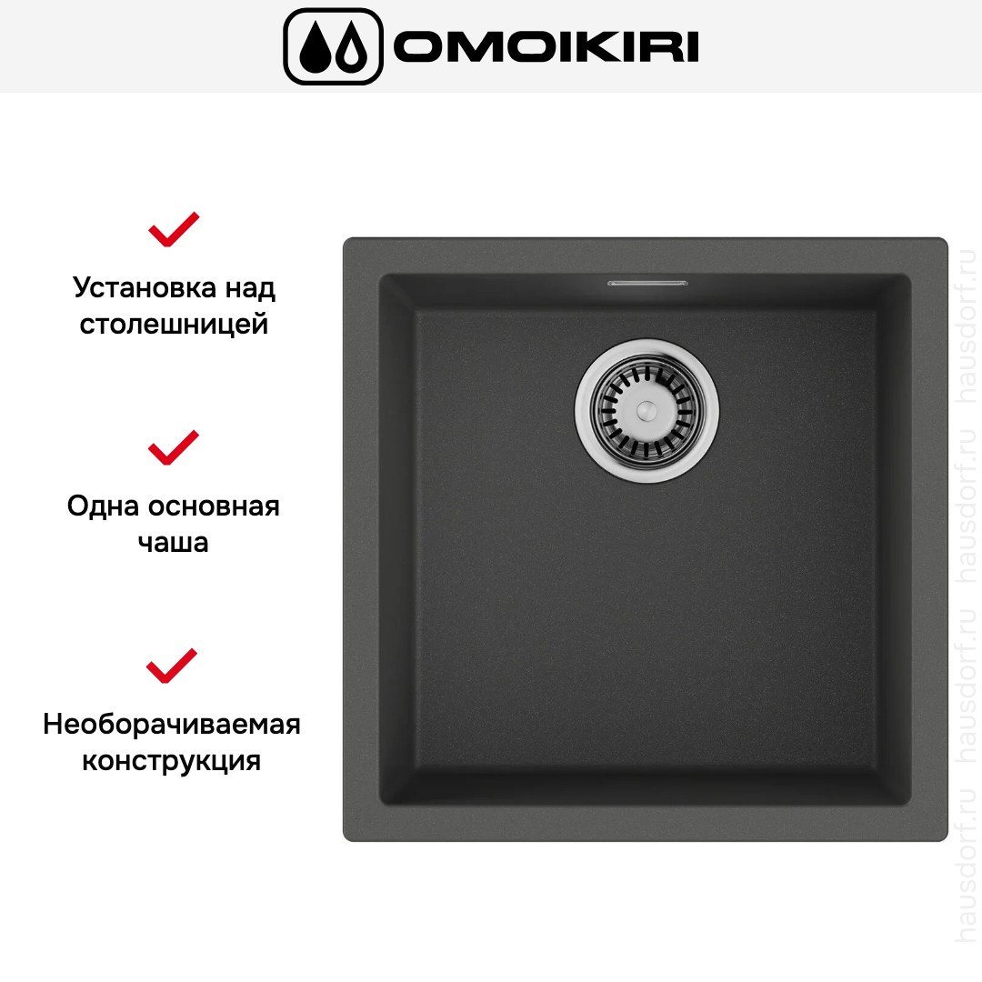 Врезная мойка Omoikiri — отличный выбор для тех, кто хочет создать гармоничное кухонное пространство с полностью вписывающейся в него сантехникой. Преимущество такой конструкции — плотное прилегание к столешнице, так как вырез подбирается индивидуально под габариты модели. Под стыки не попадает вода, поэтому срок службы значительно увеличивается, пользоваться ей удобно и приятно. Данная модель имеет стандартную форму, поэтому подходит большинству пользователей. Устанавливается под столешницу, благодаря чему не остается стыков, в которых копились бы загрязнения, а также увеличивается рабочая глубина. Устанавливается над столешницей: это самый простой способ монтажа, зачастую с ним можно справиться даже без специалистов, главное — правильно рассчитать размеры ниши.