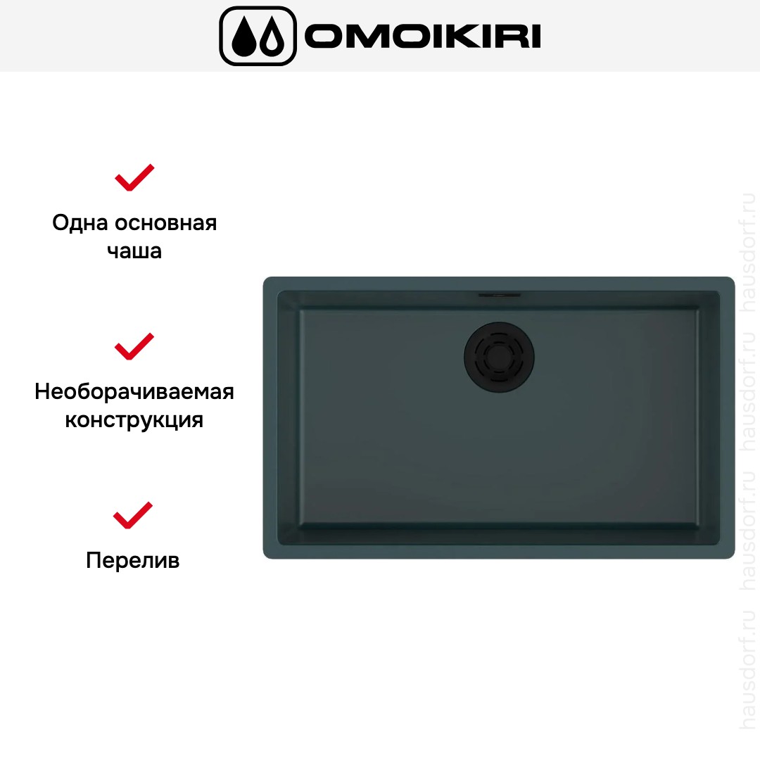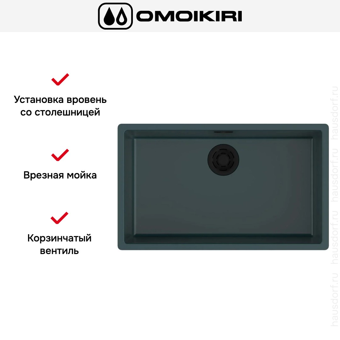 Мойка OMOIKIRI Yamakawa 75 Integra DO — элегантное и функциональное решение для современной кухни в глубоких сине-зеленых тонах. Прямоугольная форма и аккуратный профиль позволяют ей выглядеть сдержанно и дорого. Габариты 75.1×45.1 см делают модель удобной для стандартной столешницы, а глубокий цвет добавляет интерьеру характер и насыщенность.
