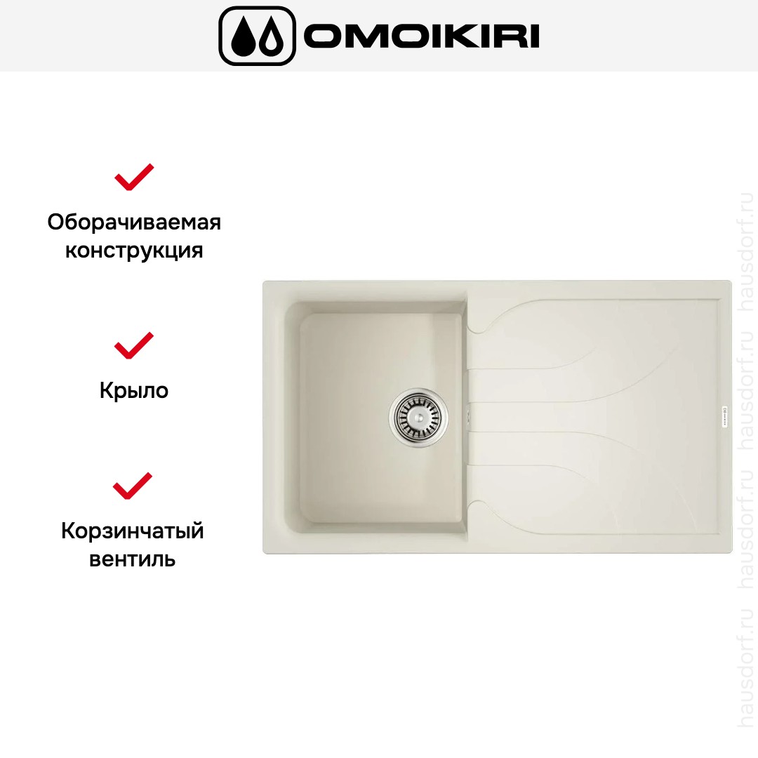 Обратите внимание на дизайнерские отличия мойки Омойкири, которые помогут в создании идеальной кухни в вашем доме. Она выполнена в цвете белый. Крыло, расположенное является дополнительным рабочим пространством, на котором можно сушить посуду, разделывать мясо и нарезать овощи.
